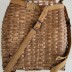 Pack basket made by Penobscot Indians, brown ash splint, about 100 yrs. old at the time of acquisition. Made for packing over-the-woods trails, strapping probably replaced. The basket originated in Herbert Wright's family (Enid's husband).
