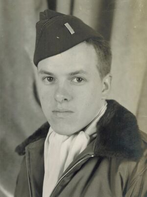 Joseph Gerald Cyr was born in Old Town on May 10, 1924 to Albert G. Cyr and Antoinette LaForest and baptized as Gerald Joseph Cyr. He graduated from Old Town High School in 1942.[1] On July 25 of the same year, he enlisted in the Army Air Force under the name of Joseph Gerald Cyr and went by that order of his given names for the rest of his live. In fact, in his early Air Force years he was known as "Little Joe" as he stood only 5' 3" tall.