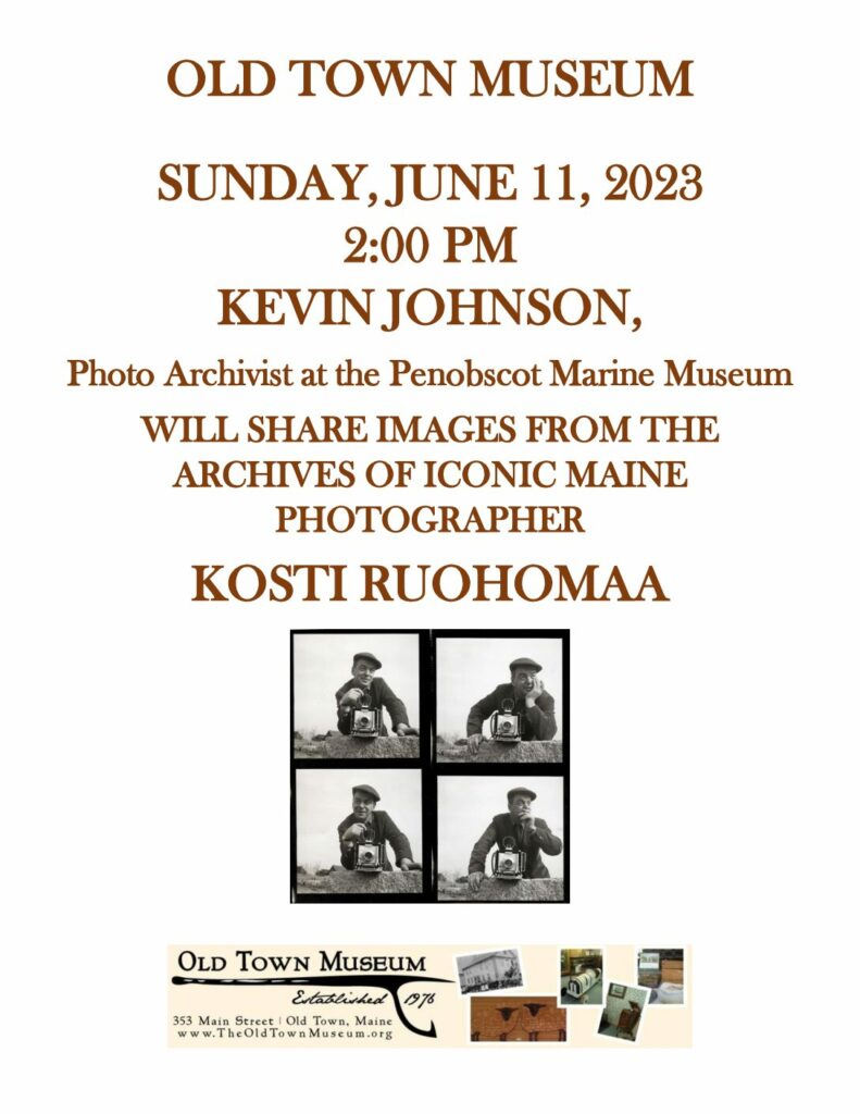 Please come join us on Sunday, June 11, 2pm for a presentation by Kevin Johnson of the Penobscot Marine Museum on iconic Maine photographer Kosti Ruohomaa.